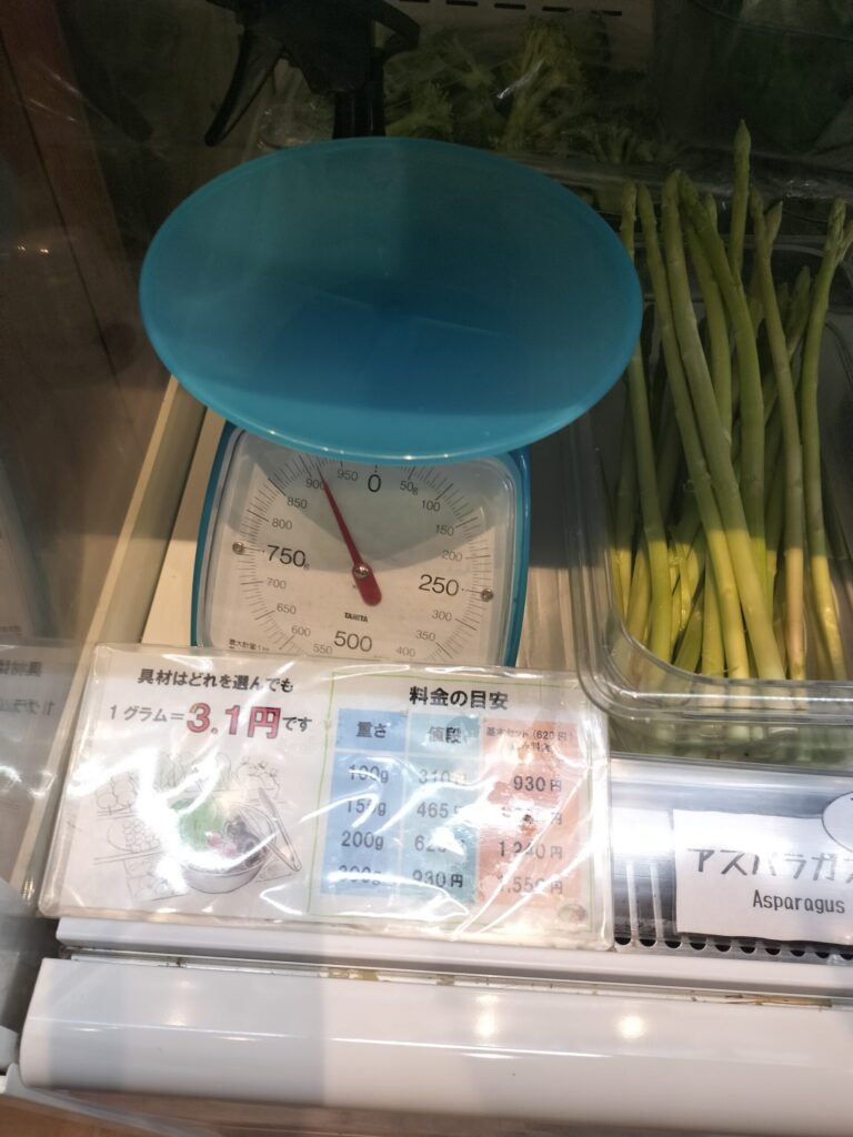 初めの説明で「1gあたり3.1円の量り売りなので、取りすぎに注意してください。たくさん取ると結構お値段が高くなっちゃいます。」と教えてもらっていたので、ビビりながら少量ずついろんな種類を選びました。秤もあったので心配な方は重さを確認してから次のステップに進むことをおすすめします。