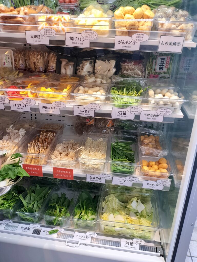 葉物などの野菜、きのこ類、肉団子、うずらの卵、がんもどきなど練り物もずらり。好きな具材を少しずつ取って、自分だけの麻辣湯を作っていきます♪
