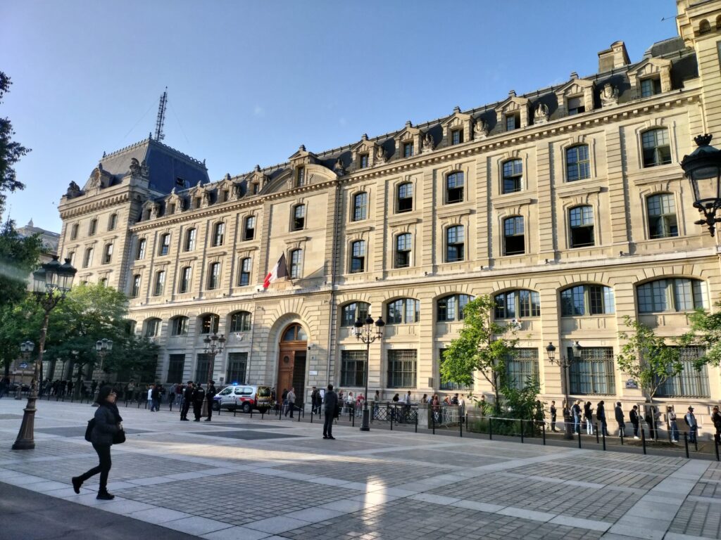 シテ駅から地上に出ると、州警察や裁判所があり、落ち着いた雰囲気でした。朝早くから州警察には長蛇の列。日本人だけでなくパリの人たちも並ぶんだな〜と想定外のことに驚きました。