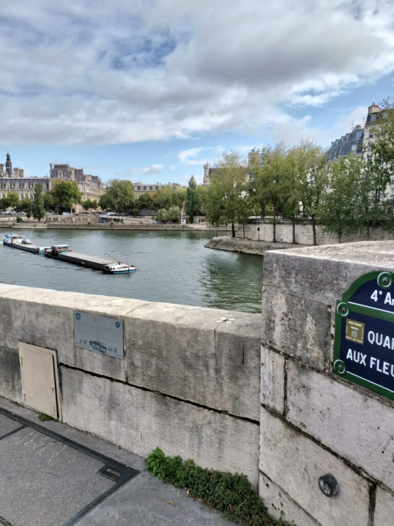 シテ島からサン・ルイ橋を渡り、サン・ルイ島へ。パリのゴミ収集車を見たり、パリ五輪の説明を見たり、セーヌ川沿いの建物はオシャレだなぁと、ゆっくり街歩きを続けます。観光名所だけでなく、街歩きでも楽しめるのが、パリの魅力ですね。