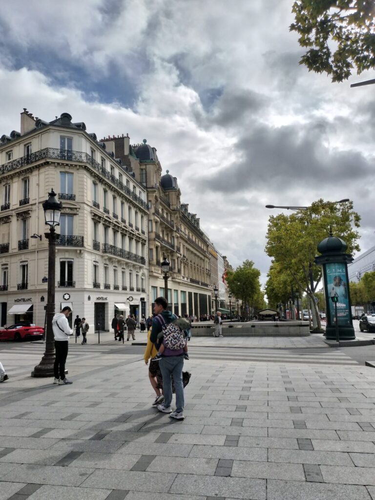 凱旋門の真下には行かず、周りの道路から見ました。子どもたちにとって面白い場所ではなかった(笑)ようで、パパっと家族写真を撮り、シャンゼリゼ通りへ移動しました。