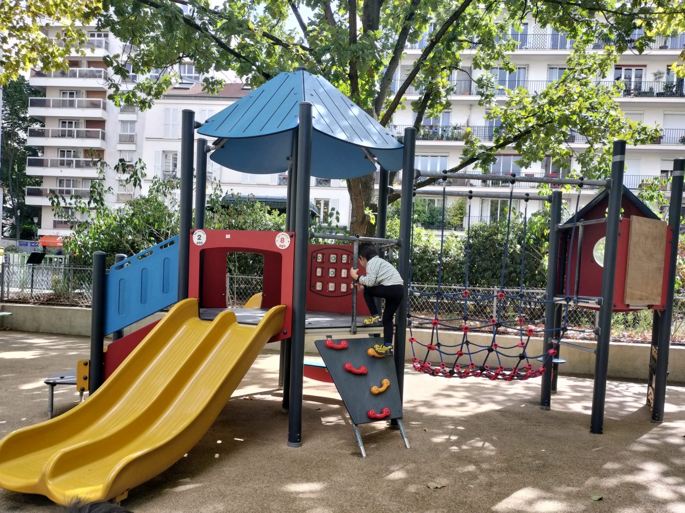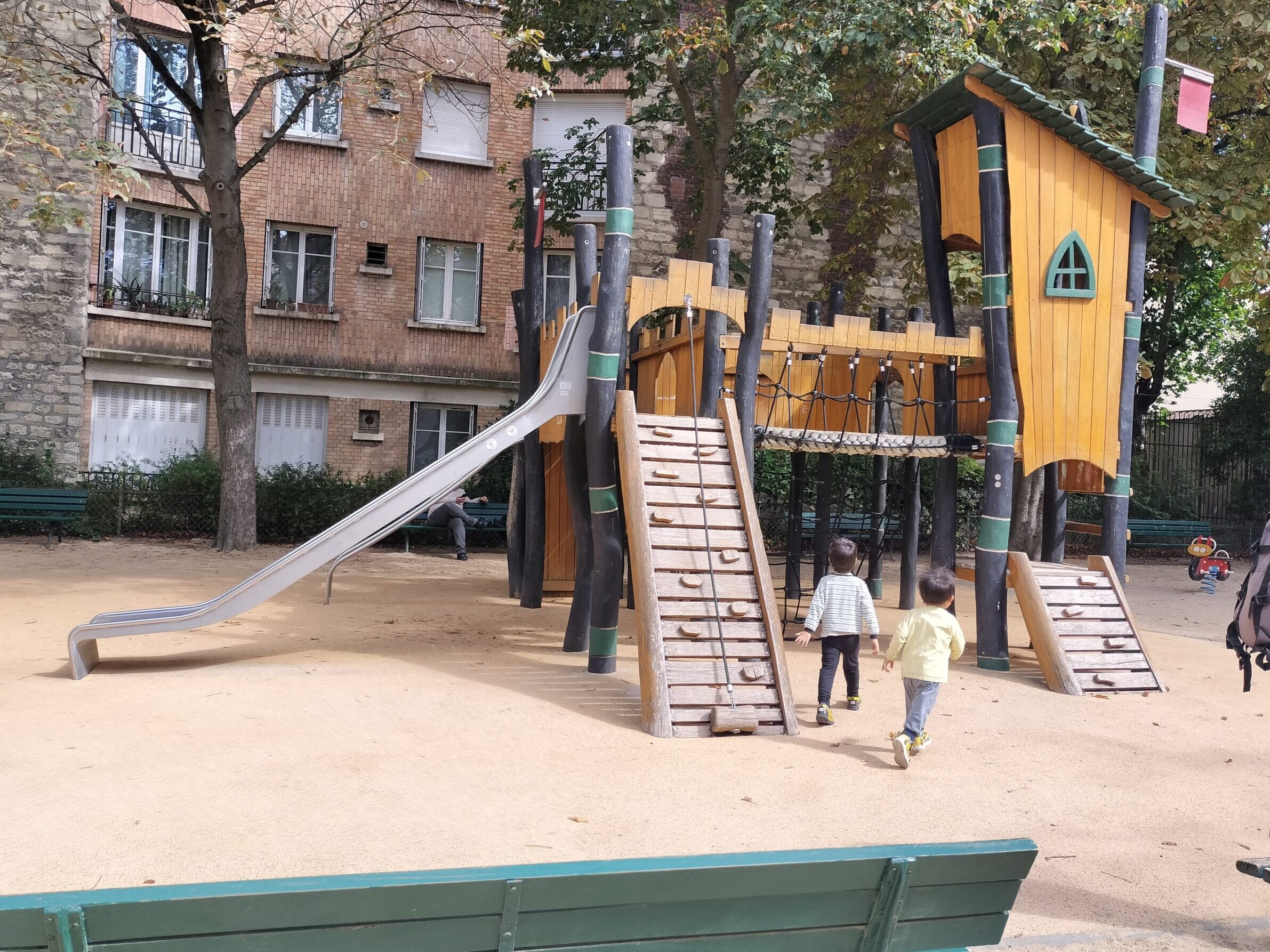 ヴォジラール(Vaugirar)駅から徒歩5分ほどの場所にあったOiseau-Lunaire SquareSquare de l’Oiseau-Lunaire には大型遊具と小さな滑り台の遊具があり、長男も次男も大喜びでした!