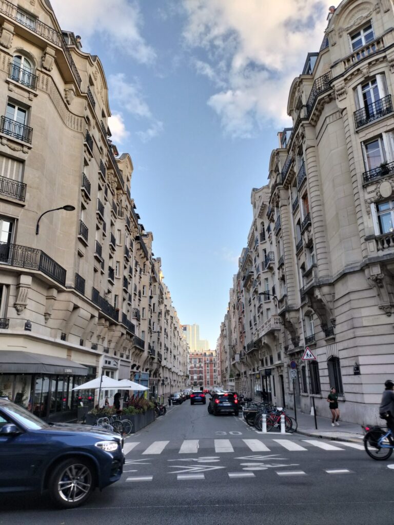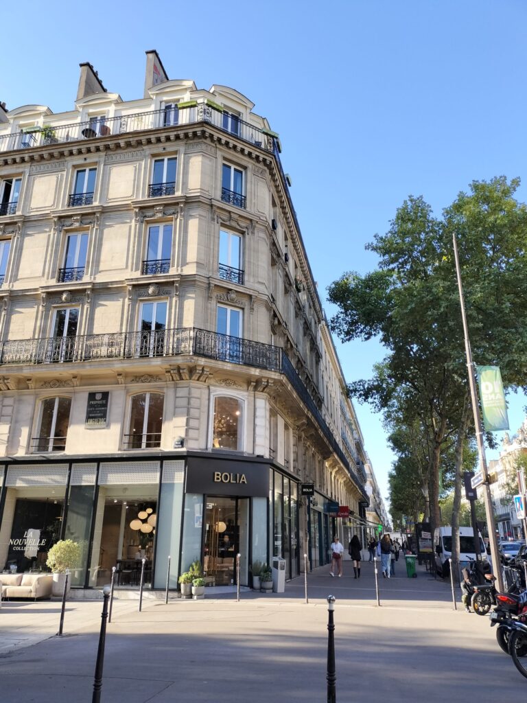 徒歩20分くらいありますが、道中は石造りの素敵な建物が並ぶので、歩いてるだけで楽しい!おしゃれなカフェもたくさん!外でコーヒーとクロワッサンを楽しむパリの人たちの姿に「これぞパリ!」と嬉しくなっちゃう!また、通りに面した大きな扉を出てくる人たち。チラ見すると奥にはアパルトマンだろう住宅が見えました。重厚な扉から出てくる人たちが、まるで映画のワンシーンのようで無性に素敵に見える⋯!