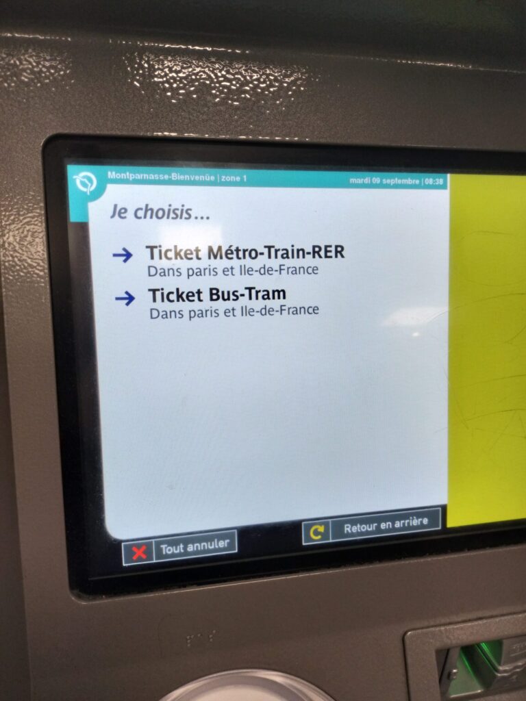 その後、すぐにモンパルナス駅の地下鉄改札を見つけ、券売機を発見しました!