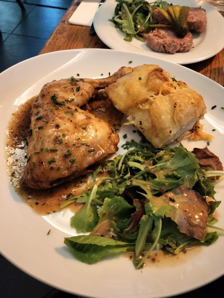 フランス語で書かれたメニューだったので、ChatGPTに翻訳してもらって、オーダー。にも関わらず、頼んだハンバーガーは鶏肉料理に(笑)ただ、どれもとっても美味しかったです!