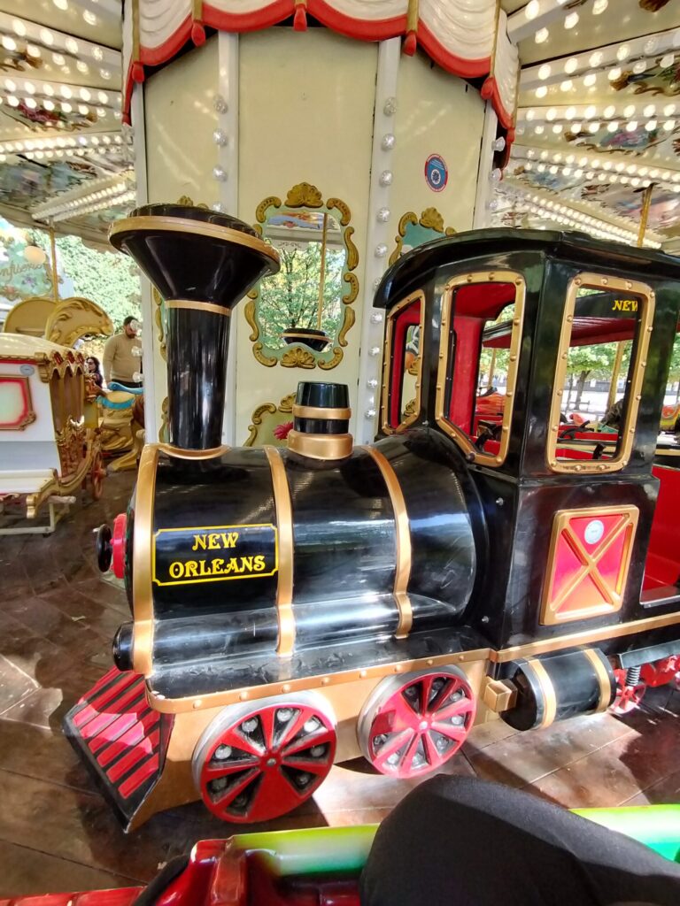 まず初めに向かったのは、メリーゴーランド。チケット売り場にスタッフさんがいたので、挨拶をしてチケットを買いました。子供もお金がかかるのかな?と思いきや、「大人料金1人につき、子供2人まで乗れるよ」と教えてくれました(^^)