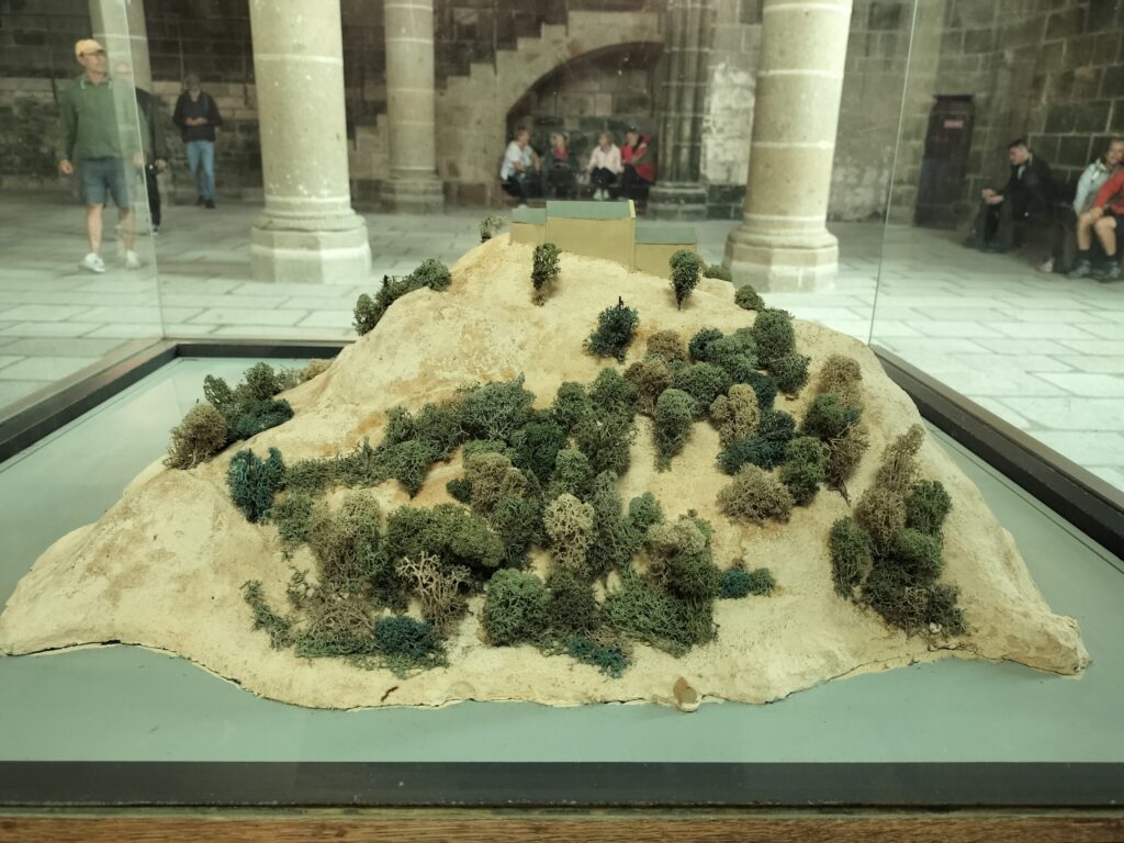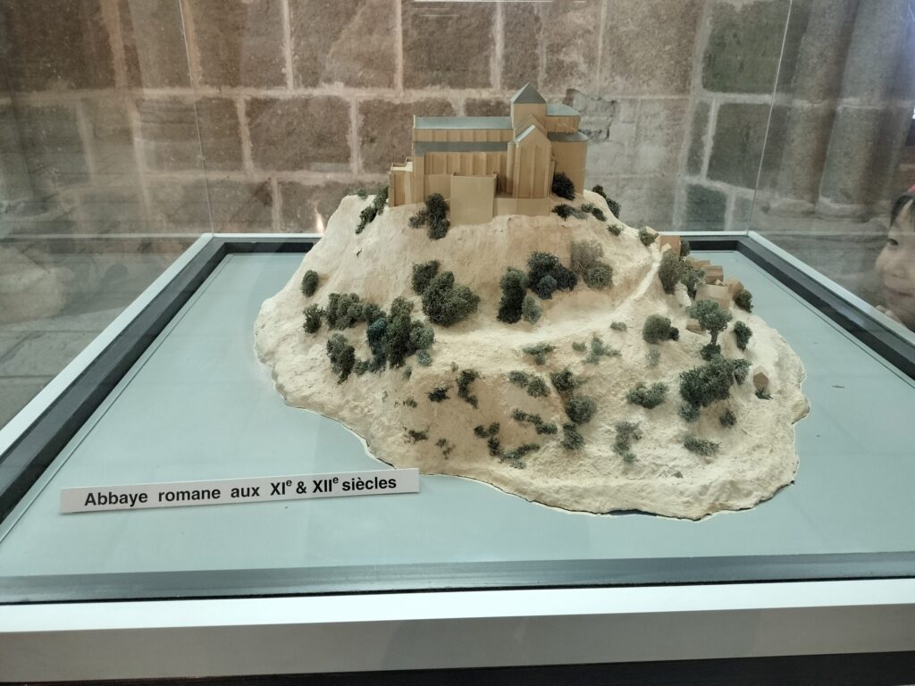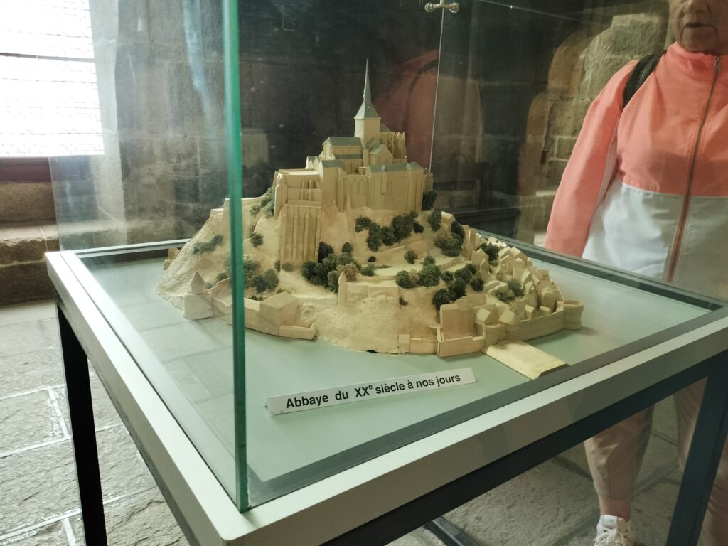 モン・サン・ミッシェルの過去から現在に至る変移を示した模型もありました。歴史の流れとともに修道院や周辺がどのように変化していったのかを知ることができます。
