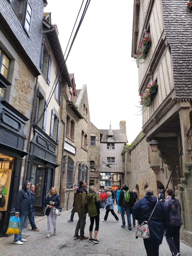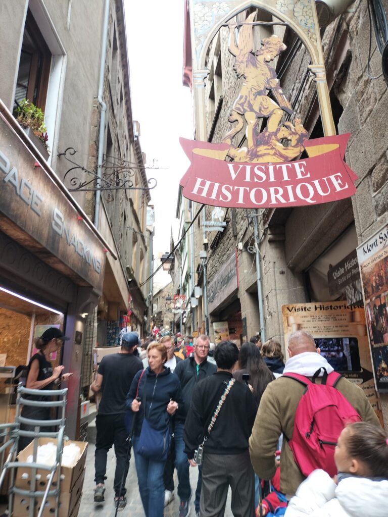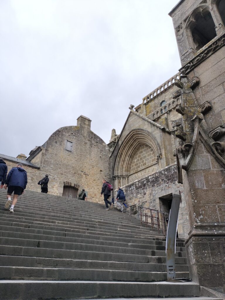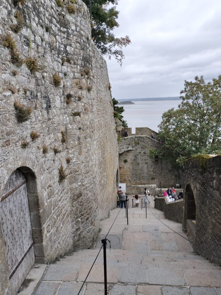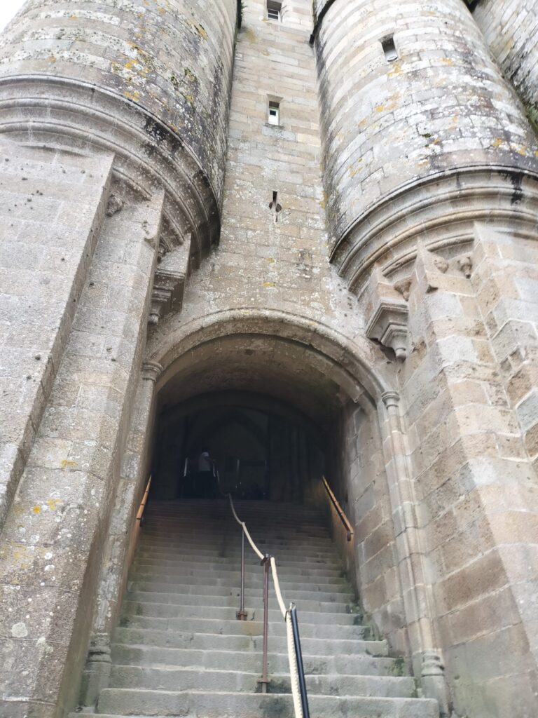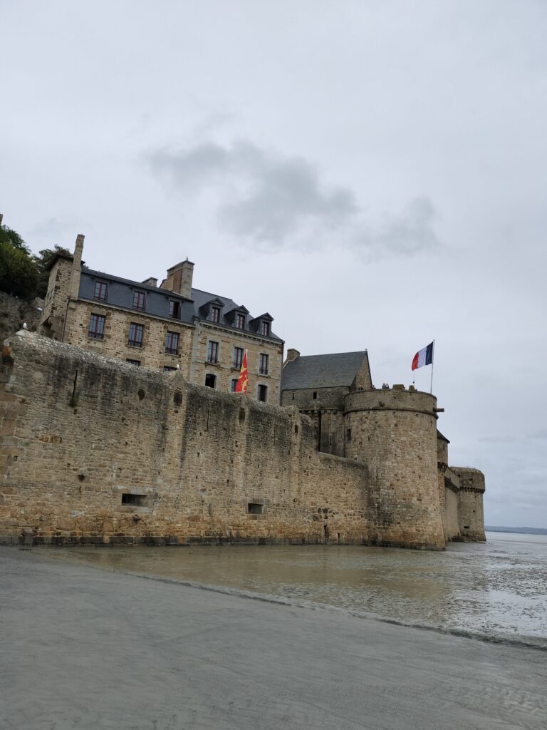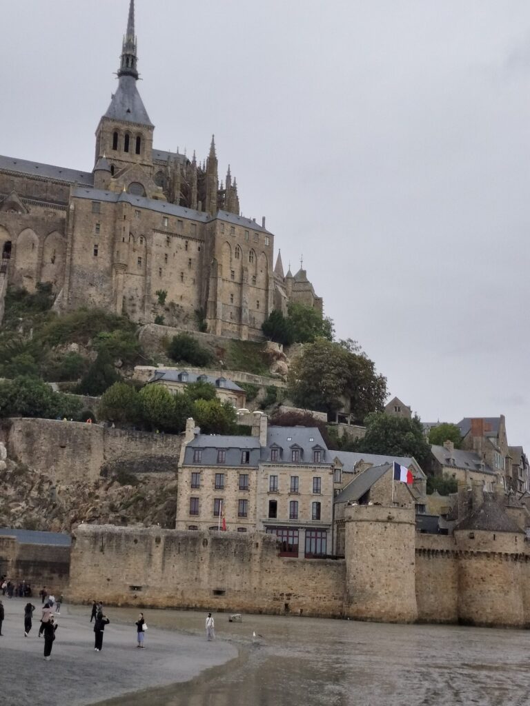 この時はちょうど干潮気味で、“海に浮かぶモン・サン・ミッシェル”とはいきませんでしたが、それでも目の前にそびえる姿はまさにラスボス級の存在感。圧倒されるようなスケールに感動しました。
