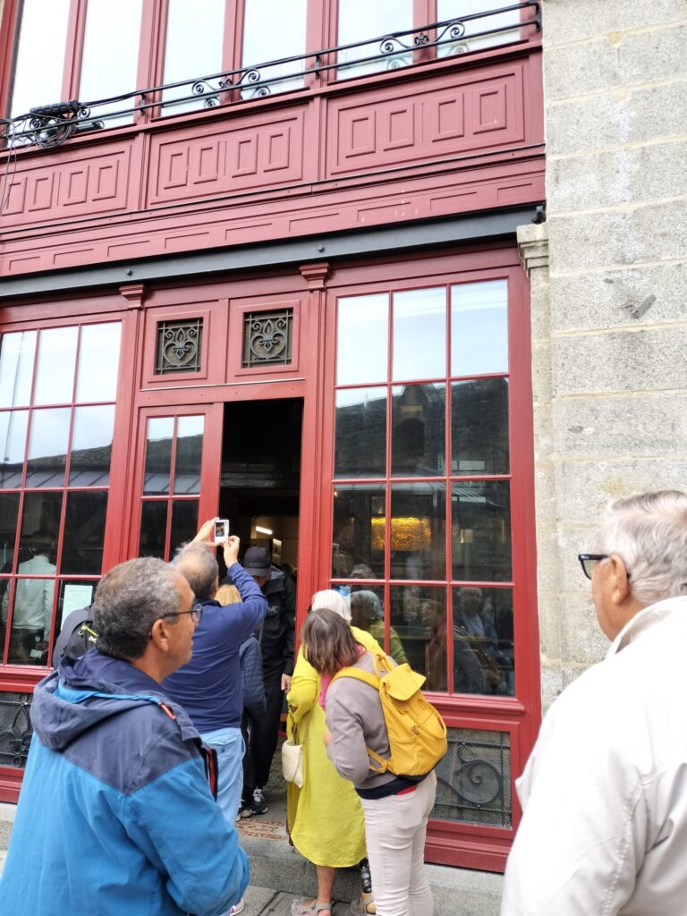 修道院の入場時間が14:00〜だったため、まずはお昼ご飯を食べることに。赤い壁のお店はオムレツで有名な『ラ メール プラール』。外観写真を撮る観光客が多かったです。
