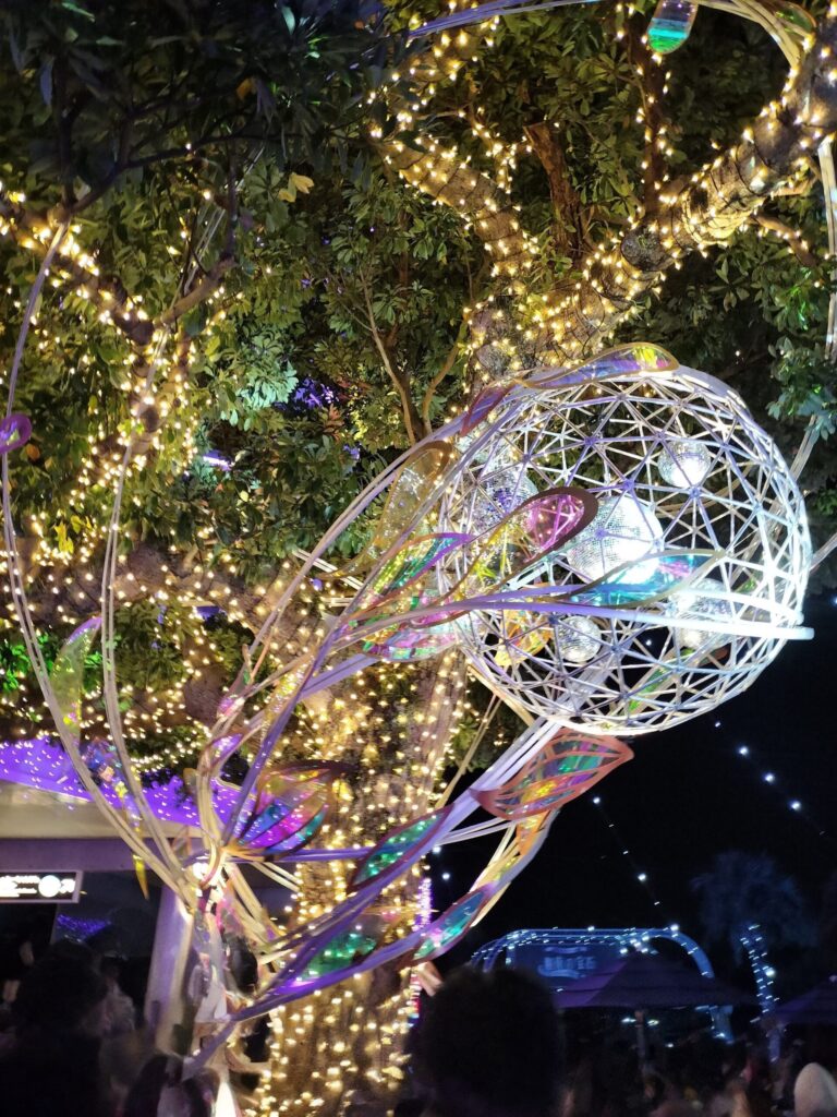以前はミラーボールが回っていた場所ですが、今年は木全体を包み込むようなオブジェが設置されていて、去年とは少し印象が変わったように感じました。(もし違っていたらごめんなさい…!)