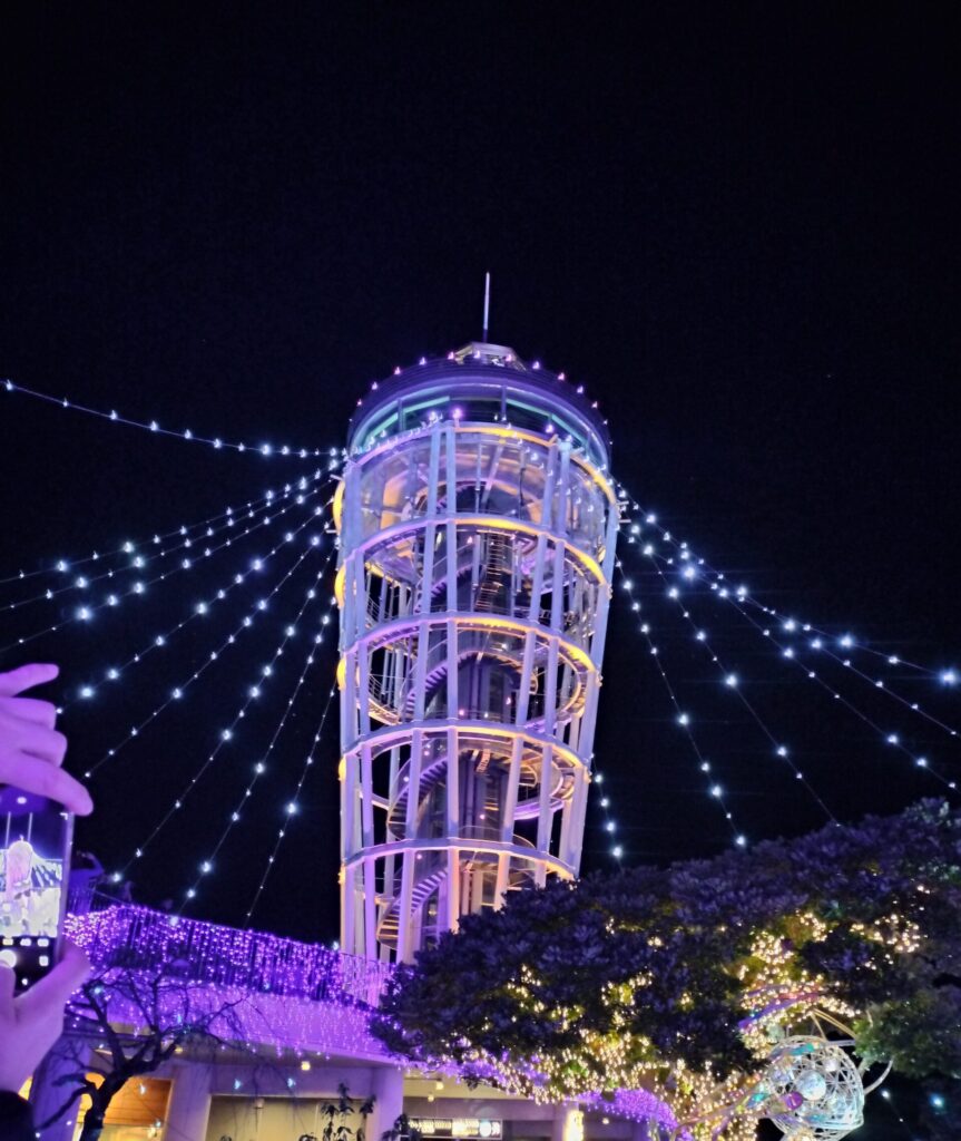 ただ……毎年来ている私からすると、正直この風景には“見慣れ感”が出てきてしまって、最初に訪れたときのような感動は薄れています。それでも、この時期しか見ることのできないシーキャンドルから降りてくる青い光はやっぱり綺麗で。初めて来る人や、久しぶりに訪れた人なら“湘南の宝石らしさ”に間違いなく心を奪われるはず。