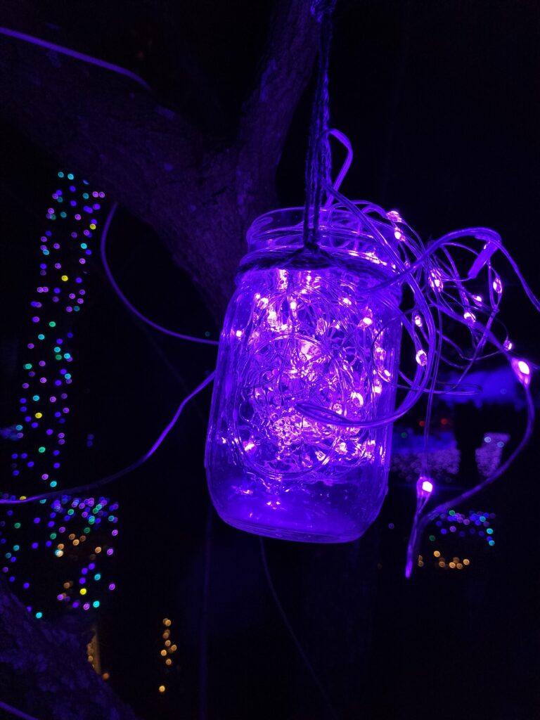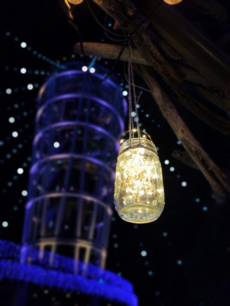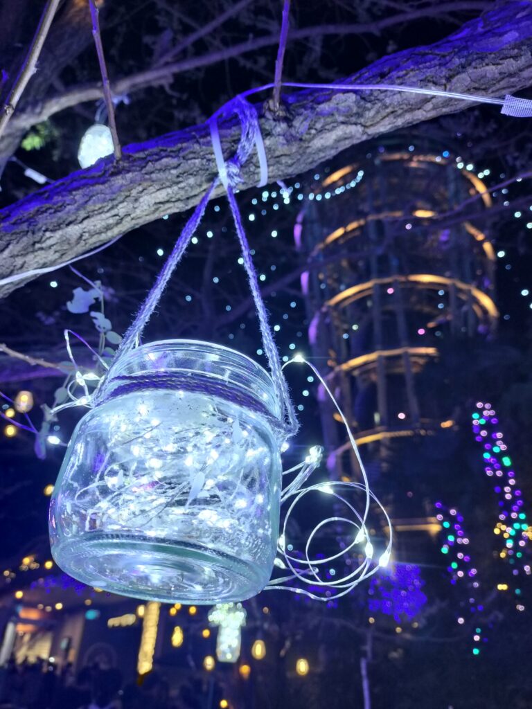 ほかにも木から瓶に入ったイルミネーションが下がっていたり!